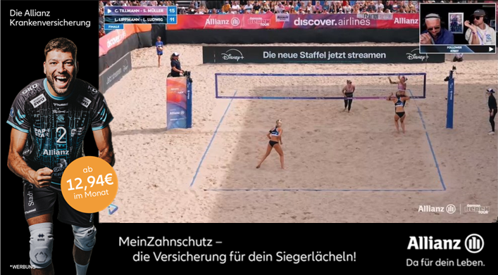 Weil MeinZahnschutz so viel kann, sagen wir das auch gerne weiter. Und wer könnte das besser als Allianzer:innen? Auch im Jahr 2025 setzen wir auf die absoluten Top Performer-Spots. Lara Sophie Thiesen (Gruppenleiterin, APKV) und Robert Sladeczek (Consultant, Allianz Technology) stellen darin „Unsere Zahnzusatzversicherung von A bis Z“ vor. Jeder Spot ist gleich aufgebaut, wechselt allerdings im präsentierten Buchstaben. So wird pro Folge ein Buchstabe hervorgehoben und unsere Zahnzusatzversicherung anhand dessen erklärt („B“ wie „beste Zahnzusatzversicherung“ und „Z“ wie „Zahnreinigung“). Ausgestrahlt wird die Werbung auf Sendern wie Sky, MTV, Eurosport und Sat.1 Gold.