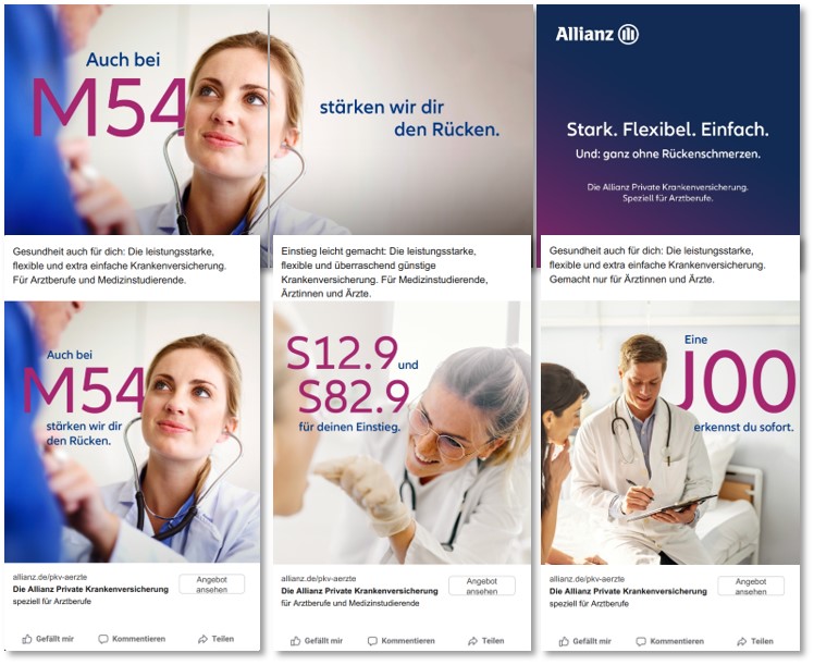 Ärztinnen und Ärzte sind eine kleine aber finanziell potente Zielgruppe. Durch eine breit angelegte Werbekampagne in diversen Kanälen schaffen wir die Aufmerksamkeit, um die Allianz Private Krankenversicherung als leistungsstarken Partner in der Zielgruppe zu verankern. Nutzen Sie den Rückenwind, um an Ärztinnen und Ärzte heranzutreten.