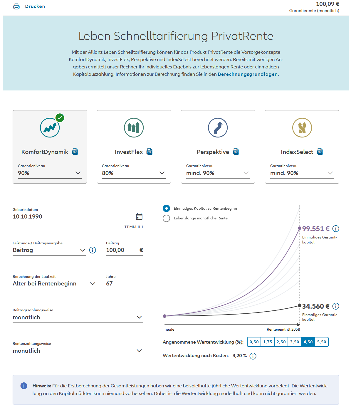 Berechnung mit den Vorsorgekonzepten KomfortDynamik, InvestFlex, Perspektive und IndexSelect