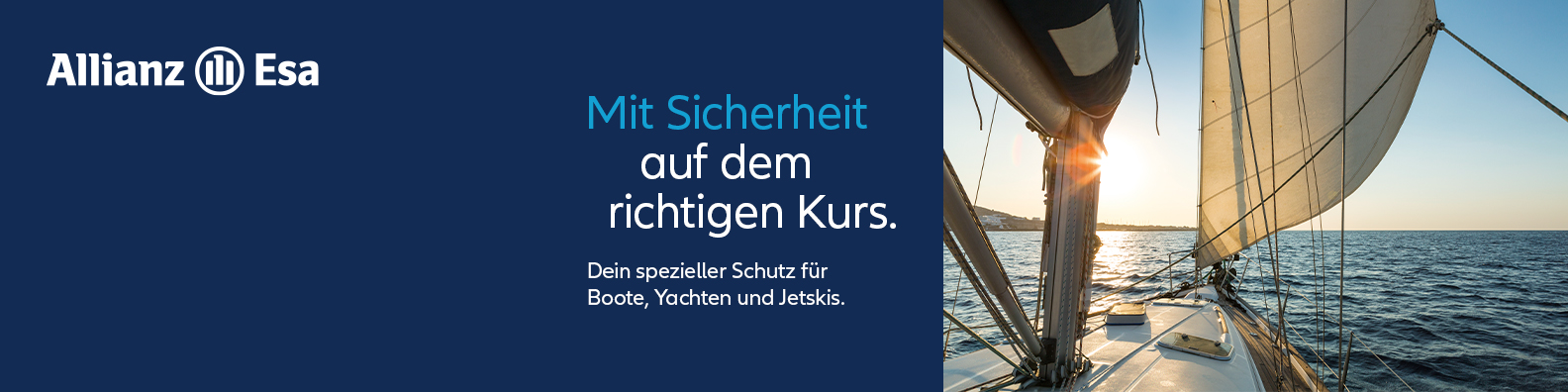 Starten Sie jetzt in die neue Saison mit unserer Wassersport-Kampagne. Sprechen Sie Boots-, Yacht- oder Jetskibesitzer sowie Yachtvereine an – die Allianz Esa Bootsversicherungen bieten umfassenden Schutz und attraktive Leistungen.